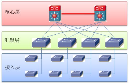 網絡技術是從1990年代中期發展起來的新技術,它把互聯網上分散的資源融為有機整體,實現資源的全面共享和有機協作,使人們能夠透明地使用資源的整體能力并按需獲取信息。資源包括高性能計算機、存儲資源、數據資源、信息資源、知識資源、專家資源、大型數據庫、網絡、傳感器等。 當前的互聯網只限于信息共享,網絡則被認為是互聯網發展的第三階段。 三層交換是以太網交換的重點,很多初學者往往理解上有失誤,對于各層職責都不為了解。甚至我見過在核心層上配置access-list等操作。 結合下圖,我簡要介紹一下三層交換網絡的構成以及各層職責。 三層交換是以太網交換的重點,很多初學者往往理解上有失誤,對于各層職責都不為了解。甚至我見過在核心層上配置access-list等操作。 結合下圖,我簡要介紹一下三層交換網絡的構成以及各層職責。 圖是一個典型的三層交換網絡,它有3個層次表示:接入層,匯聚層,核心層。 接入層: 顧名思義,本層是為終端設備接入LAN的第一道設備,是最接近用戶計算機的設備,該層設備的特點是: 端口密集 接口狀態翻動頻繁 單位流量低 有較多的訪問策略 有二層環路存在 以上幾條是該層的特點,一般接入層交換機多為24口,48口等,呈堆疊狀態,因為用戶團體是相當龐大的。 一般接入層交換機端口保持在10/100自協商,最大100,保證微分段的設備的傳輸速度,因為是接到用戶計算機,所以接入層交換機的端口狀態經常在UP和 DOWN之間反復,不適合做STP(生成樹協議)的根。而因為面對用戶,所以接入層交換機有過多的策略限制,如VLAN等。 一般接入層交換機會以2端口的100口綁定成以太通道(Trunk等)接入到匯聚層。 匯聚層: 該層是接入層的交換機流量集合的地方,所有的接入層交換機會以各種高速通道連接到匯聚層交換機。該層的特點如下: 端口數量較接入層交換機稀疏 單位端口交換速度遠大于接入層交換機 基本要保證數據的高速無阻礙轉發 端口狀態穩固,翻動幾乎不存在 很多匯聚層交換機是三層設備 一般匯聚層交換機端口較少,但一般都是千兆端口,用于接受接入層的流量,而且因為在本層,被轉發的數據基本比較“純凈”,所以必須保證高速的數據轉發,因為是匯聚層,該層的端口翻覆狀態幾乎不會遇見,除非某臺接入層交換機損壞,一般中型的匯聚層交換機帶有三層功能,可以配置access-list,進一步限制非法流量。是非常合適的STP根。 核心層: 該層設備屬于大型設備,主要保證數據的更高速無障礙轉發,包括路由等。 該層設備特點為: 造價高 具有3層功能 正常情況下無端口翻覆狀況 轉發(路由)速度非常快 有的核心層承擔LAN通往外部的關口 該層的主要目的是數據匯總然后以最快速度轉發出去,所以不能在該層配置任何阻礙或過濾數據包的配置。一般是無環路的。 【相關文章】