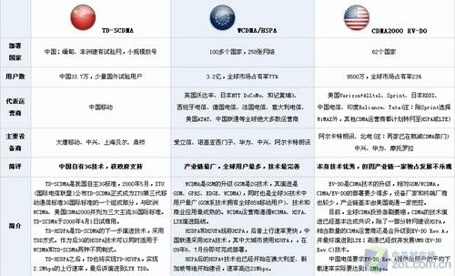 3G標(biāo)準(zhǔn),國際電信聯(lián)盟(ITU)目前一共確定了全球四大3G標(biāo)準(zhǔn),它們分別是WCDMA、CDMA2000和TD-SCDMA和WiMAX。