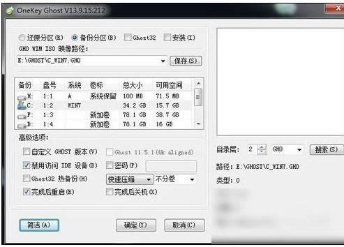 還原系統(tǒng)圖解詳情-1 雙擊啟動onekey,如果是要備份C盤,需要選中”備份分區(qū)“, 編輯備份文件的保存路徑, 選中需要備份的盤符,比如說要備份的是C盤