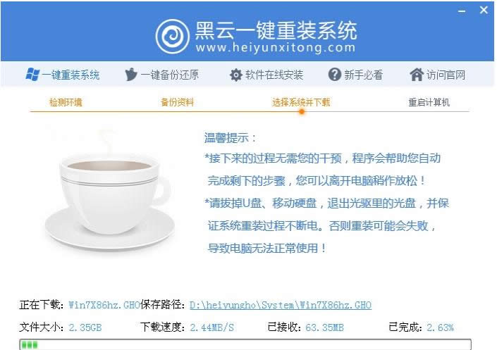 系統(tǒng)軟件是指控制和協(xié)調計算機及外部設備,支持應用軟件開發(fā)和運行的系統(tǒng),是無需用戶干預的各種程序的集合,主要功能是調度,監(jiān)控和維護計算機系統(tǒng);負責管理計算機系統(tǒng)中各種獨立的硬件,使得它們可以協(xié)調工作。系統(tǒng)軟件使得計算機使用者和其他軟件將計算機當作一個整體而不需要顧及到底層每個硬件是如何工作的。 一提起重裝系統(tǒng)這個話題,對于大部分人來說,不是那么簡單的事,印象中操作繁多且復雜,如果現(xiàn)在還這樣想就大錯特錯了,現(xiàn)在,早已為電腦新手推出一系列的一鍵重裝系統(tǒng)的方法了,其步驟非常簡單,只需根據提示走就行了,不信,就來看看小編的這篇黑云一鍵重裝系統(tǒng)教程便知了。 系統(tǒng)重裝系統(tǒng)方法確實挺多的,什么系統(tǒng)光盤,U盤裝機,但是今天,小編就向大家推薦使用越來越受用戶歡迎,尤其是新手用戶的重裝系統(tǒng)的方法,那就是使用黑云一鍵重裝系統(tǒng),具體的使用黑云一鍵重裝系統(tǒng)的操作方法如下。 黑云一鍵重裝系統(tǒng)如何使用 重裝準備 1、黑云一鍵重裝工具 2、備份C盤和桌面重裝要數據 3、系統(tǒng)下載:雨林木風ghost win7 64位完整旗艦版V2017 重裝系統(tǒng)步驟: 打開黑云一鍵重裝系統(tǒng)工具,工具會自動檢測出當前電腦環(huán)境、分區(qū)模式、網絡狀態(tài)等,點擊立即開始重裝系統(tǒng)之旅 系統(tǒng)圖解詳情-1 在這里選擇需要的數據進行備份,該重裝軟件只刪除系統(tǒng)盤(C盤)數據,其他盤文件不影響,點擊備份并進行下一步 一鍵重裝圖解詳情-2 進入選擇系統(tǒng)界面,根據電腦配置以及根據自己使用習慣選擇,一般內存2G選擇安裝32位系統(tǒng),內存4G以上選擇安裝64位系統(tǒng),選擇好之后,點擊安裝此系統(tǒng) 黑云圖解詳情-3 這里以安裝win7 32位系統(tǒng)為例,點擊安裝此系統(tǒng)后進入自動下載系統(tǒng)過程 黑云圖解詳情-4 下載完成后配置重裝文件,執(zhí)行倒計時進行系統(tǒng)安裝,第一階段安裝完成后,自動重啟 重裝系統(tǒng)圖解詳情-5 重啟后自動安裝系統(tǒng)組件、驅動、以及系統(tǒng)激活等操作 重裝系統(tǒng)圖解詳情-6 ghost完成后會重啟進入安裝系統(tǒng)階段,最后重啟進入系統(tǒng)桌面后。 重裝系統(tǒng)圖解詳情-7 以上就是黑云一鍵重裝系統(tǒng)的使用教程了。 系統(tǒng)軟件一般是在計算機系統(tǒng)購買時隨機攜帶的,也可以根據需要另行安裝。 |