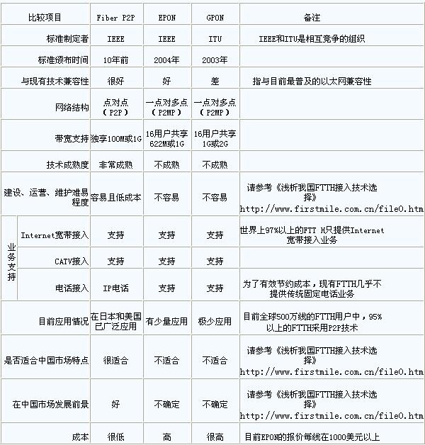 網(wǎng)絡(luò)技術(shù)是從1990年代中期發(fā)展起來(lái)的新技術(shù),它把互聯(lián)網(wǎng)上分散的資源融為有機(jī)整體,實(shí)現(xiàn)資源的全面共享和有機(jī)協(xié)作,使人們能夠透明地使用資源的整體能力并按需獲取信息。資源包括高性能計(jì)算機(jī)、存儲(chǔ)資源、數(shù)據(jù)資源、信息資源、知識(shí)資源、專家資源、大型數(shù)據(jù)庫(kù)、網(wǎng)絡(luò)、傳感器等。 當(dāng)前的互聯(lián)網(wǎng)只限于信息共享,網(wǎng)絡(luò)則被認(rèn)為是互聯(lián)網(wǎng)發(fā)展的第三階段。 作為國(guó)內(nèi)首家專業(yè)從事光纖到戶(Fiber To The Home——FTTH)設(shè)備研發(fā)生產(chǎn)的企業(yè),最近我們接到許多FTTH應(yīng)用需求,在與FTTH不同類型用戶溝通過(guò)程中,我們發(fā)現(xiàn)不少用戶對(duì)FTTH技術(shù)選擇和應(yīng)用普遍存在認(rèn)識(shí)誤區(qū)。這些認(rèn)識(shí)誤區(qū)包括:忽視FTTH技術(shù)風(fēng)險(xiǎn),盲目要求支持全業(yè)務(wù)接入;不了解我國(guó)FTTH市場(chǎng)特點(diǎn),盲目選擇FTTH接入技術(shù);潛意識(shí)認(rèn)為FTTH網(wǎng)絡(luò)建設(shè)一定是高投入,缺乏發(fā)展眼光分析FTTH投資效益。 誤區(qū)一、忽視FTTH技術(shù)風(fēng)險(xiǎn),盲目要求支持全業(yè)務(wù)接入 很多用戶動(dòng)軋要求FTTH支持全業(yè)務(wù),要求同時(shí)支持寬帶上網(wǎng)、有線電視(CATV)接入和傳統(tǒng)固定電話接入,即所為三網(wǎng)合一接入,希望實(shí)現(xiàn)FTTH接入技術(shù)一步到位。我們認(rèn)為,能支持寬帶上網(wǎng)、有限電視(CATV)接入和普通固定電話接入固然理想,但這實(shí)際上存在巨大技術(shù)風(fēng)險(xiǎn)。 FTTH技術(shù)是打破最后一公里通信瓶頸的新技術(shù),目前主要有三種FTTH技術(shù)標(biāo)準(zhǔn):基于以太網(wǎng)的點(diǎn)對(duì)點(diǎn)(Ethernet Fiber P2P)技術(shù)、基于以太網(wǎng)的無(wú)源光網(wǎng)絡(luò)(Ethernet Based Passive Optical Network——EPON)技術(shù)和基于通用幀協(xié)議的無(wú)源光網(wǎng)絡(luò)(General Frame Protocol Based Passive Optical Network——GPON)技術(shù)。三種FTTH接入技術(shù)特點(diǎn)比較如下: 從上表可以看出,目前全球500萬(wàn)線的FTTH用戶中,97%以上的FTTH接入網(wǎng)絡(luò)只提供Internet寬帶接入業(yè)務(wù),因?yàn)镕TTH提供傳統(tǒng)固定電話成本遠(yuǎn)遠(yuǎn)高于現(xiàn)有固定電話技術(shù)成本,而且利用光纖傳輸傳統(tǒng)固定電話還存在電話供電問(wèn)題。雖然EPON和GPON支持三網(wǎng)合一接入,但其標(biāo)準(zhǔn)剛剛頒布,技術(shù)成熟尚需時(shí)日,EPON和GPON這兩種標(biāo)準(zhǔn)相互競(jìng)爭(zhēng)對(duì)未來(lái)推廣也存在不確定性,而其一點(diǎn)對(duì)多點(diǎn)的無(wú)源網(wǎng)絡(luò)結(jié)構(gòu)并不適合中國(guó)高密度住宅小區(qū)應(yīng)用,再者,EPON和GPON相關(guān)器件至少須要5年的標(biāo)準(zhǔn)化和成熟過(guò)程,在未來(lái)5年內(nèi)難與目前以太網(wǎng)P2P器件在成本上和普及上相競(jìng)爭(zhēng),目前光電器件遠(yuǎn)無(wú)法滿足生產(chǎn)低成本PON系統(tǒng)要求。由此可見(jiàn),在現(xiàn)階段盲目追求FTTH全業(yè)務(wù)接入將不可避免帶來(lái)巨大的技術(shù)風(fēng)險(xiǎn)。 在接入網(wǎng)上,光纖替代各種銅質(zhì)纜線是必然趨勢(shì),但一夜之間光纖就徹底替代銅質(zhì)纜線,所有業(yè)務(wù)都通過(guò)光纖接入是不現(xiàn)實(shí)的,也是無(wú)法想象的。任何技術(shù)的進(jìn)步和應(yīng)用都是循序漸進(jìn)的,F(xiàn)TTH也不例外。因此在FTTH發(fā)展和推廣初期,光纖與銅質(zhì)纜線共存是必然的,光纖與銅質(zhì)纜線的共存能使用戶和電信運(yùn)營(yíng)商有效避免FTTH的技術(shù)風(fēng)險(xiǎn)。首先,可以在初期采用Fiber P2P接入技術(shù)低成本實(shí)現(xiàn)FTTH的寬帶接入,而CATV和傳統(tǒng)固定電話仍然采用同軸線和雙絞線接入,對(duì)別墅區(qū)也可以低成本通過(guò)光纖同時(shí)實(shí)現(xiàn)CATV接入,免鋪同軸線;其次,目前我國(guó)電信業(yè)務(wù)提供存在行業(yè)壁壘,電信運(yùn)營(yíng)商不允許經(jīng)營(yíng)CATV業(yè)務(wù),反之CATV運(yùn)營(yíng)商不許經(jīng)營(yíng)傳統(tǒng)電信業(yè)務(wù)(如電話),而且這一現(xiàn)狀在未來(lái)相當(dāng)一段時(shí)間內(nèi)無(wú)法改變,因此單一運(yùn)營(yíng)商無(wú)法在FTTH接入網(wǎng)絡(luò)提供三網(wǎng)合一業(yè)務(wù);再次,由于光纜壽命可以達(dá)40年,而銅質(zhì)纜線一般為10年,因此當(dāng)銅質(zhì)纜線因壽命出現(xiàn)通信質(zhì)量下降時(shí),不需再鋪設(shè)任何纜線,只需升級(jí)光纖設(shè)備,就可以提供原銅質(zhì)纜線提供的業(yè)務(wù),實(shí)際上,任何時(shí)候只要技術(shù)成熟且成本能夠被接受,就可以隨時(shí)升級(jí)光纖設(shè)備,及時(shí)享受FTTH新技術(shù)帶來(lái)的便捷和高帶寬。 綜上所述,目前選擇光纖與銅質(zhì)纜線共存,采用Fiber P2P的FTTH實(shí)現(xiàn)Internet寬帶接入,CATV和傳統(tǒng)固定電話仍然采用同軸線和雙絞線接入,能有效避免FTTH技術(shù)風(fēng)險(xiǎn)同時(shí),盡早享受FTTH新接入技術(shù)帶來(lái)的便捷和高帶寬,而在技術(shù)成熟且成本能夠被接受,同時(shí)行業(yè)壁壘消除的時(shí)候,可以隨時(shí)升級(jí)光