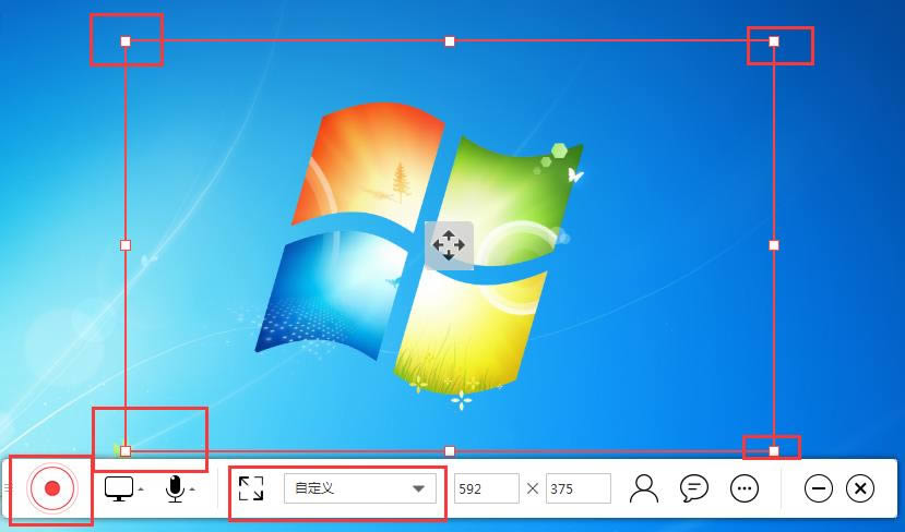 1.拖拽框選內容選擇你要錄制的內容,根據需要設置各種參數