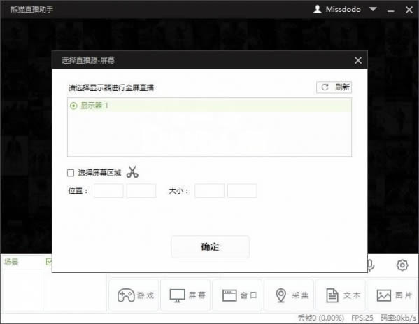 點擊“游戲”按鈕,選擇你要直播的游戲。點擊確定,助手會出現你的游戲畫面。