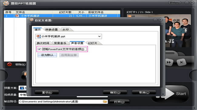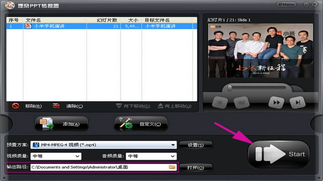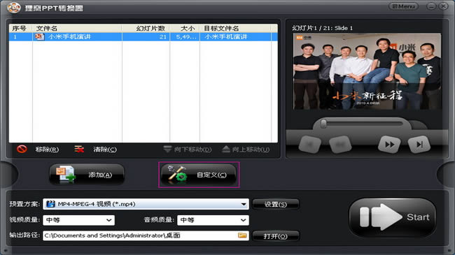 貍窩ppt轉(zhuǎn)換軟件是一款可以將powerpoint轉(zhuǎn)換成視頻的格式轉(zhuǎn)換軟件,可把ppt格式幻燈片轉(zhuǎn)換為視頻格式,也可以將照片制作視頻軟件。輸入PPT文件即可輸出格式為avi、wmv、mpeg、flv、mp4、vob、3gp、3g2、mov、ipod、iphone、psp、pmp、等的流行視頻格式。ppt轉(zhuǎn)換成視頻可上傳視頻網(wǎng)站,也可以刻錄dvd光盤[升級(jí)vip后可使用],ppt轉(zhuǎn)換器不僅支持轉(zhuǎn)換網(wǎng)上所有流行的視頻格式,并且支持任何視頻尺寸/分辨率設(shè)置。