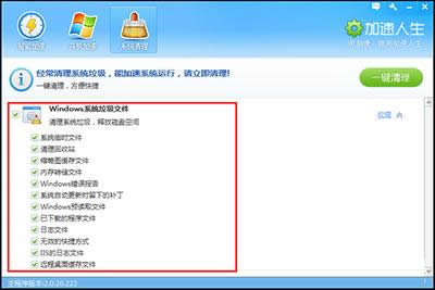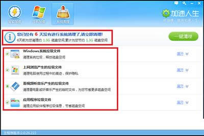 ![]() 打開加速人生,清新藍色界面上方有3個功能分區,找到“系統清理”界面,可清楚的看到待清理的項目以及距離上一次清理系統的時間。用戶可以根據清理系統的間隔時間來定期進行系統清理,以保持系統的順暢運行。 點擊待清理項目后面的“展開”,即可看到待清理的詳細項目。根據自身的需要,可選擇需要進行清理的項目進行“一鍵清理”。操作步驟如下: Step1:”展開”待清理項,查看需要清理的項目的詳細內容。 ![]() Step2:根據自身的需要,對要清理的項目進行勾選。 ![]() Step3:點擊“一鍵清理”,加速人生即可自動進行相應項目的清理。 ![]() 很多用戶有在線看電影的習慣,在清理系統垃圾的時候,需要注意不要把自己的觀影記錄當做系統垃圾給誤刪掉。展開“看視頻聽音樂產生的垃圾文件”項目,找到自己常用的視頻播放器清理項去掉勾選,即可保證之前留下來的觀影記錄不被當做系統占用垃圾誤刪。 ![]() 另外加速人生還有“智能加速”和“開機加速”兩個大功能。 “智能加速”主要用來處理在使用電腦時一些多余占用系統內存的應用。打開“智能加速”界面,即可看到“多余”的運行應用,根據自身的需要進行勾選,點擊“一鍵加速”即可關閉這些應用,釋放被占用的內存。 ![]() “開機加速”這個功能主要是針對開機速度進行優化的。用戶可根據“開機建議”對可禁用應用進行選擇,以關掉不需要的應用加快開機速度。 ![]() 房間定期清理才會潔凈如新,系統也一樣,定期清理才會使用順暢。今天你的電腦還沒有“大掃除”嗎?趕緊用加速人生來掃掃垃圾加快速度吧! 當加速人生完成后,在主窗口提示加速后關閉多少的資源占用程序,為用戶節約了多少內存。有了加速人生,加速一鍵搞定。 硬件是實在的,有模有樣的。軟件是程序性的。是一系列的指令。有了軟件,硬件才會實現更豐富的功能。 |