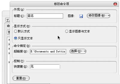 添加命令 1.添加命令 打開WPS文字2007,右擊工具欄選擇“自定義”打開自定義窗口,在左側“命令欄”列表中選擇“常用”,單擊自定義窗口右下角的“+”按鈕。在彈出的添加窗口中,同樣在左側選擇“常用”,然后在右側的命令列表中隨便選擇一個命令項雙擊,如:雙擊保存命令項,即可在“常用”工具欄前添加一個“保存”按鈕。此時常用工具欄中會有兩個 “保存”按鈕。 2.添加命令 在自定義窗口的右側命令列表中雙擊剛添加的“保存”命令項打開“修改命令項”對話框。輸入標題為“簽名”,顯示方式則選中“只顯示文本”單選項。接著單擊命令綁定的“選擇”按鈕,在下拉列表中選擇“插入圖片”,在彈出對話框中選擇打開要插入的個人簽名的圖片文件。然后把輸入光標定位到快捷鍵的輸入框中按Delete鍵刪除原有快捷鍵,以免干擾原來的保存快捷鍵。當然在此你也可以自己指定另外一組新的快捷鍵。最后單擊關閉完成設置,再關閉退出自定義窗口。 添加命令 現在我們已經在常用工具欄前增加了一個“簽名”命令。以后只要單擊常用工具欄的“簽名”即可在當前光標位置插入個人簽名的圖片。 更多教程,請關注金山wps使用教程大全! 硬件是實在的,有模有樣的。軟件是程序性的。是一系列的指令。有了軟件,硬件才會實現更豐富的功能。 |