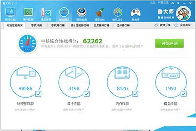 1、在使用魯大師跑完分后,可以看到自己電腦的“綜合性能得分”以及下面各種性能“單獨(dú)得分”。如下圖所示