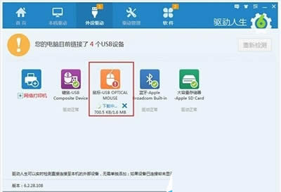 電腦連接鼠標沒反應的解決方法: 根據提示裝好驅動人生后,在主界面找到外設驅動,如果它會很清晰的顯示您的電腦目前連接了幾個外設設備。如鼠標驅動有問題時,它會顯示成一個感嘆號,您只需點擊一下有感嘆號的圖標,驅動人生會幫您立即修復。 ![]() 此時,您只需稍等片刻,驅動人生即可成功修復好鼠標驅動問題。 ![]() 現在的鼠標產品附加功能越來越豐富,驅動人生也與時俱進的不止僅僅只能夠修復鼠標驅動而已。驅動人生可以實現設置鼠標更為豐富的功能,如下圖所示,我們可以在驅動人生上設置鼠標的一切功能。 ![]() 用驅動人生來解決鼠標驅動問題,第一可以解決鼠標沒有反應和不啟動的問題。第二以后鼠標有什么需要設置和更改的地方也可以直接在驅動人生上面解決。 硬件是實在的,有模有樣的。軟件是程序性的。是一系列的指令。有了軟件,硬件才會實現更豐富的功能。 |