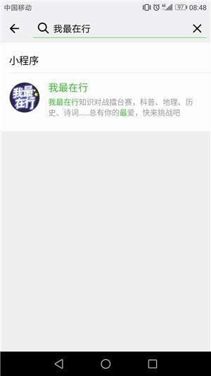 第一種方法:首先打開最新版本的微信,然后進(jìn)入到發(fā)現(xiàn)頁面,選擇小程序功能,在頁面上方的搜索框中輸入關(guān)鍵字“我最在行”,然后在搜索結(jié)果中點(diǎn)擊進(jìn)入這個(gè)小程序即可,如下圖所示;