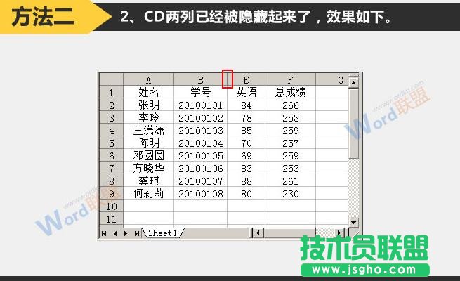 辦公軟件是指可以進行文字處理、表格制作、幻燈片制作、圖形圖像處理、簡單數據庫的處理等方面工作的軟件。目前辦公軟件朝著操作簡單化,功能細化等方向發展。辦公軟件的應用范圍很廣,大到社會統計,小到會議記錄,數字化的辦公,離不開辦公軟件的鼎力協助。另外,政府用的電子政務,稅務用的稅務系統,企業用的協同辦公軟件,這些都屬于辦公軟件。 怎么在Excel2003中如何隱藏行或列 方法一 1、選中要隱藏的行/列,格式-行/列-隱藏 2、選中的行/列已經被隱藏,效果如下。 方法二 1、選中要隱藏的列/行,單擊鼠標右鍵,選擇“隱藏”。 2、CD兩列已經被隱藏起來了,效果如下。