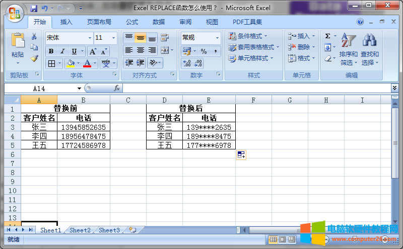 辦公軟件是指可以進行文字處理、表格制作、幻燈片制作、圖形圖像處理、簡單數(shù)據(jù)庫的處理等方面工作的軟件。目前辦公軟件朝著操作簡單化,功能細化等方向發(fā)展。辦公軟件的應(yīng)用范圍很廣,大到社會統(tǒng)計,小到會議記錄,數(shù)字化的辦公,離不開辦公軟件的鼎力協(xié)助。另外,政府用的電子政務(wù),稅務(wù)用的稅務(wù)系統(tǒng),企業(yè)用的協(xié)同辦公軟件,這些都屬于辦公軟件。 REPLACE函數(shù)語法Replace(old_text,start_num,num_chars,new_text),old_text指的是需要替換的字符串,即是誰要被替換;start_num指的是從左邊開始數(shù),第幾個字符開始替換,即是從哪兒開始替換;num_chars指的是替換的個數(shù);new_text指的是替換成的新字符串,即是要替換為什么。 REPLACE函數(shù)用法第一步:啟動office辦公軟件,新建excel文檔,鼠標選中輸出內(nèi)容所在單元格E3,然后點擊編輯欄,即『fx』右側(cè)的空白方框處; 第二步:在編輯欄中輸入『=REPLACE(B3,4,4,"****")』,此函數(shù)意思為將電話號碼的中間四位數(shù)字隱藏,用『*』代替,然后回車; 第三步:獲得REPLACE函數(shù)結(jié)果,操作完成; 第四步:使用下拉填充,完成剩余項。 Office辦公軟件是辦公的第一選擇,這個地球人都知道。 |