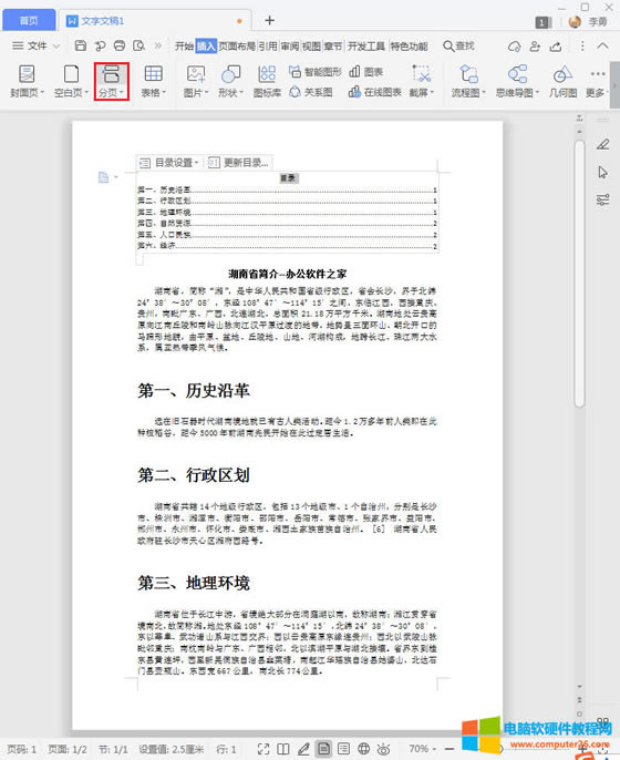 辦公軟件是指可以進行文字處理、表格制作、幻燈片制作、圖形圖像處理、簡單數據庫的處理等方面工作的軟件。目前辦公軟件朝著操作簡單化,功能細化等方向發(fā)展。辦公軟件的應用范圍很廣,大到社會統計,小到會議記錄,數字化的辦公,離不開辦公軟件的鼎力協助。另外,政府用的電子政務,稅務用的稅務系統,企業(yè)用的協同辦公軟件,這些都屬于辦公軟件。 在編輯文檔的時候,目錄有時是必不可少的一項,今天,小編就教教大家wps目錄自動生成的方法。 第一步:啟動wps office辦公軟件,然后選中標題; 第二步:設置標題格式; 第三步:將鼠標移動到文本最前端,即標題『湖南省簡介--辦公軟件之家』前,然后點擊『引用』功能菜單,再點擊『目錄』功能,最后選擇第一個目錄格式; 第四步:生成目錄后,繼續(xù)將鼠標移動到標題『湖南省簡介--辦公軟件之家』前,然后點擊『插入』功能菜單,再點擊『分頁』功能; 第五步:成功將wps目錄放置于第一頁。 Office辦公軟件是辦公的第一選擇,這個地球人都知道。 |