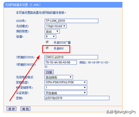 第三種連接方式 WDS橋接。 在無線設(shè)置中,副路由器被用作無線擴(kuò)展器WDS功能,然后選擇橋接主路由器ssid號(hào)碼和無線密碼。