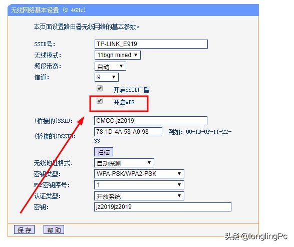 ![]() 第三種連接方式 WDS橋接。 在無線設置中,副路由器被用作無線擴展器WDS功能,然后選擇橋接主路由器ssid號碼和無線密碼。 ![]()