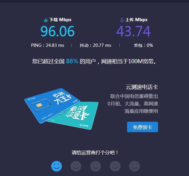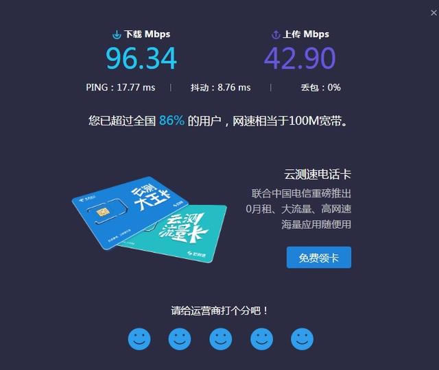 為了方便測試,我首先用足夠長的網(wǎng)線直接連接電腦測速。