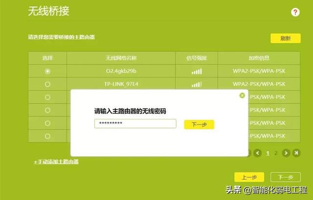路由器(Router)是連接兩個或多個網絡的硬件設備,在網絡間起網關的作用,是讀取每一個數據包中的地址然后決定如何傳送的專用智能性的網絡設備。 小速路由器如何無線橋接 (如何連接小速路由器) 無線橋接比有線節省了布線步驟,也很方便,特別是對于房屋相對較大,無線橋接更為必要,可以增加副路由器無線橋接(WIFI無線中繼),將WIFI信號延伸到需要的地方,我們來看看步驟。 路由器無線橋接步驟 首先,你必須有兩個路由器。我們分別稱兩個路由器為主路由和副路由。主路由首先連接到網絡,副路由用于橋接主路由WiFi信號。 ![]() 一、設置主路由器 1.設置主路由正常連接到網絡。一般來說,主路由是能正常上網是的,所以和以前一樣,不需要設置主路由器。 我們只需要知道主路由WiFi名稱和密碼可以,假設主路由WiFi名稱為“O2.4gkb29b”,WiFi密碼為12345678 二、設置副路由器 1.首先進入副路由設置界面。用電腦連接副路由WiFi(當然也可以用傳統的網線連接電腦,可以連接)。 ![]() 2.打開電腦/手機上的任何瀏覽器,登錄副路由器(弱電君就行tp-link以副路由器為例,一般默認登錄地址為192.168.1.1)。 3.進入副路由器后,點擊【應用管理】——【無線橋】 ![]() 可以看到,主路由器的wifi名稱在列表中。 ![]() 選擇主路由器wifi名稱,然后點擊下一步,輸入主路由器的wifi密碼(所以記住主路由器wifi密碼)。 ![]() 輸入后,就成功連接到主路由器,為了防止ip主路由器自動分配沖突ip地址給副路由器,這個ip主路由器地址ip屬于同一網段。 弱電君在這里說,這個ip地址有什么用? 這個ip橋接成功后,地址為,登錄副路由器的ip地址。 ![]() 接著下一步就是設置副路由器新的無線名稱和無線密碼。我們將無線名稱設置為c924記住這個名字(也可以隨意設置其他),然后保存。 ![]() 其實這一步已經到了副路由器的無線橋接已完成,點擊后,副路由會自動重啟,待重啟完后,就可以在wifi在信號中找到副路由器,輸入新設置的密碼,直接連接到副路由器。 驗證橋接是否成功 由于主副路由器的橋接已經完成,我們來驗證下,驗證是否能夠連接上副路由器。 連接副路由器wifi試試,在wifi在信號中找到新設置的副路由器wifi名稱:c924,輸入密碼連接。 ![]() 這是新設置的副路由器wifi名稱”c924“,已成功連接上了。 事實上,連接是否成功,也可以直接返回副路由器的主界面,已顯示無線橋接成功。 ![]() 橋接的整個過程設置也很簡單。 補充: 在弱電君的補充下,這里可以看到一種現象,即橋接成功后,副路由器的登錄地址發生了變化, 未橋接前:副路由器的默認登錄地址是192.168.1.1, 橋接后:副路由器的登錄地址變為10.168.1.208,主路由器ip地址為同一網段。因此,如果以后進入副路由器,則需要輸入ip地睛10.168.1.208進入了。因此,如果以后進入副路由器,則需要輸入ip地睛10.168.1.208進入了。 ![]() |