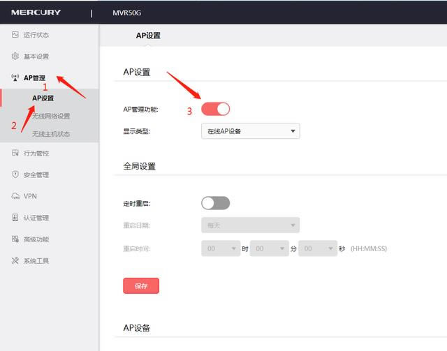 開啟AP管理 2、設(shè)置AP無線名稱和密碼