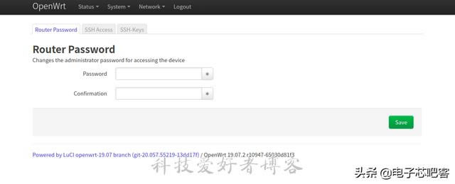 openwrt登錄界面 點擊“go to password configuration設置系統密碼,避免總是提醒更改密碼。 ![]()