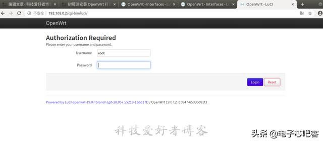 安裝在樹莓派 OpenWrt 本文介紹了如何在樹莓派2B上安裝超級路由器openwrt,創建超級路由器的過程。今天,我們在樹莓派3B 刷最新版本Openwrt,并配置連接互聯網,打開openwrt創建全能路由器的無線功能。最后,測量了樹莓派路由器的速度openwrt解釋漢化方法。以下是具體教程。 一、下載系統鏡像根據樹莓派安裝 OpenWrt 本文介紹創建超級路由器,下載openwrt相應的覆盆子系統鏡像。 最新版本是19.07.我從清華大學的鏡像源下載,速度很快。地址:openwrt 19.07.2 鏡像(樹莓派3B 版本) 下載的鏡像是壓縮文件,在安裝系統前應減壓。 二、安裝系統鏡像假如你的電腦是Windows或者Mac,那么使用etcher這個軟件刻錄會更方便。 如果是Linux直接使用系統dd命令制作樹莓派openwrt這里有系統盤,教程:Linux制作樹莓派系統盤 ![]() 三、啟動樹莓派 將SD插入覆盆子派,用網線連接覆盆子派和電腦,然后覆盆子派連接電源,等待系統啟動。 注意:這里一定要先用網線連接覆盆子和電腦,然后再啟動覆盆子,否則覆盆子啟動后連接不上。 然后打開電腦上的瀏覽器,輸入http://192.168.1.1/,可以打開openwrt登錄界面。 您可以隨意輸入用戶名和密碼進入系統 ![]()