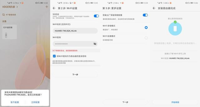 輕松連接 說完外觀,我們來談談實際經驗。華為路由Q2 Pro配置方法非常簡單。連接電源后,路由通過隨機附帶的網線與光貓連接,并在手機上安裝一個名為華為智能家居的網線App,該軟件在各大安卓應用市場和蘋果App Store可下載,安裝完成后,將手機與WiFi連接(默認無密碼的初始連接)App軟件便會跳出設置向導!幾個簡單的步驟就可以完成所有的設置!幾個簡單的步驟就可以完成所有的設置! ![]()