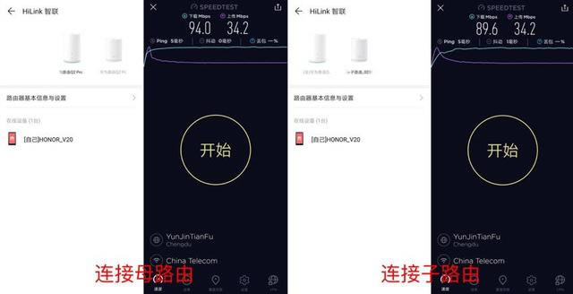同時,我們還使用游戲《王者榮耀》來檢測網絡的延遲情況,可以看到,在連接母路由時網絡延時為4ms,連接子路由時網絡延遲5ms,基本處于同一水平! ![]()
