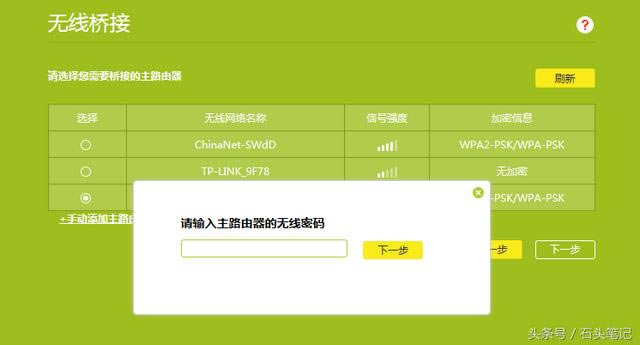 無線橋接從網(wǎng)絡(luò)橋接開始,企業(yè)發(fā)展到一定規(guī)模,將分為多個(gè)部門,使每個(gè)部門都有自己的局域網(wǎng),一是C地址只能容納253臺(tái)主機(jī),二是由于網(wǎng)絡(luò)無用信息的傳播,產(chǎn)生了網(wǎng)絡(luò)橋接技術(shù)。簡(jiǎn)單來說,就是兩個(gè)網(wǎng)絡(luò)通過網(wǎng)絡(luò)橋連接,實(shí)現(xiàn)網(wǎng)絡(luò)之間的互訪,比如FTP資源。但由于技術(shù)的快速發(fā)展和無線網(wǎng)絡(luò)的普及,考慮到建設(shè)成本,許多辦公面積超過300平方米的公司將購買更便宜的路由器和無線橋接,實(shí)現(xiàn)單光纖共享,節(jié)約成本。然而,由于技術(shù)的快速發(fā)展和無線網(wǎng)絡(luò)的普及,考慮到建設(shè)成本,許多辦公面積超過300平方米的公司將購買更便宜的路由器進(jìn)行無線橋接,實(shí)現(xiàn)單光纖共享,節(jié)約成本。這就是為什么無線路由器上的無線橋接功能。 一般家庭也會(huì)使用它。例如,當(dāng)房屋面積相對(duì)較大,居住在家里的人更多時(shí),就會(huì)使用它。人數(shù)較多后,隨著接入網(wǎng)絡(luò)的人數(shù)的增加,網(wǎng)絡(luò)信號(hào)將越來越弱,甚至無法連接。此時(shí),可以使用無線橋。一般是客廳和臥室,臥室是主路由器,藏在信號(hào)箱里,客廳從路由器放在電視機(jī)頂盒里。 那么如何設(shè)置無線橋接,無線橋接從路由器不需要連接網(wǎng)線,直接插入電源,登錄路由器設(shè)置頁面,如下圖所示(找到無線橋接功能,一般在無線設(shè)置中,搜索無線信號(hào)):