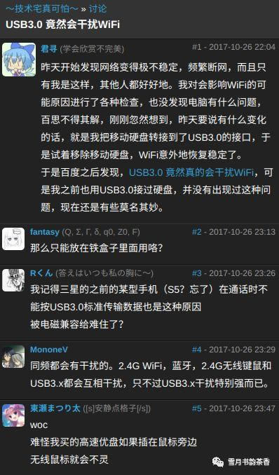 路由器(Router)是連接兩個或多個網絡的硬件設備,在網絡間起網關的作用,是讀取每一個數據包中的地址然后決定如何傳送的專用智能性的網絡設備。 路由器插u盤后就沒網了 (插上u盤就沒網) 你的無線會掉線可能是因為USB3.0的一個鮮為人知的BUG ? 如果你有買過過雙頻WIFI不難發現市面上很多路由器都帶有一個USB接口,這個USB接口還絕大部分是USB3.0,用戶可以接上自己的移動硬盤進行無線數據備份或者利用SAMBA來隨時訪問插在無線路由器USB接口上的移動硬盤。如果你這么干了,你可能不注意,你的WIFI是有點問題的,2.4GWIFI忽然沒網,網絡連接不穩定。如果你要連上2.4GWIFI打守望先鋒排位賽,那就是噩夢一般的體驗。 ![]() 警告 博主深受其害,對此深惡痛絕,發誓一定要找到原因。 原來不止我一個 ![]() 悲催的mac用戶 ![]() 來自谷歌翻譯我在2013年后期的Macbook Pro Retina 2.6 / 8/512上遇到了wifi和USB 3的奇怪問題。當我將USB3棒(Kingston Data Traveler 32 GB)插入左側的USB3端口時,我無法連接到互聯網。當我彈出它時,互聯網就可以了。每次我重復此過程時,情況相同。您是否經歷過類似的事情?謝謝。 干擾原因 英特爾早在2012年就發布了一份白皮書 《USB 3.0 Radio Frequency Interference Impact on 2.4 GHz Wireless Devices》 ![]() 內容是全英的,簡單概括一下內容 USB3.0在使用時,會在2.4G頻段增加約20dB的噪聲,造成對2.4GHz ISM頻段的射頻干擾。這種干擾會降低無線接收的靈敏度,進而縮減收訊范圍,足以影響干擾無線設備(無線網卡、無線鼠標及無線耳機等)的正常使用。實際上,USB3.0的擴頻處理導致其頻譜從0Hz一直蓋到5GHz。經Intel測量,干擾功率隨頻率下降,在2.4G頻段約有-60dBm,到5G頻段只有-90dBm。同時文中還指出,當這頻段的射頻接收器放得愈靠近USB 3.0裝置或連接器,干擾的狀況就愈明顯 抬杠:USB3.0不是5G Hz么,怎么會對2.4G Hz設備產生影響? USB 3.0 的信號速率是5Gbit/s 沒毛病,但是USB 3.0 需要對數據進行加密,并且需要在時鐘上應用擴頻。數據頻譜見下圖 ![]() 從圖中不難看到,USB3.0的數據頻譜非常寬,從DC到5G Hz. 繼續看圖 下圖是USB3.0數據頻譜產生的噪聲測試 ![]() 在2.4G -2.5G Hz 范圍內,這些寬帶噪音極大可能會從計算機的USB 3.0 連接器向外散發。 在PC平臺上,外圍設備上的USB3.0連接器靠近此頻段運行無線設備的天線在USB3.0輻射通道上,都會接收到這些寬帶噪聲,導致無線鏈路的吞吐量下降。 ![]() 測量連接HDD噪聲 ![]() 硬盤HDD測量結果 ![]() 上圖可知,連接HDD(硬盤)之后 噪聲提高了將近20 dB,這個將嚴重影響無線設備靈敏度。 接下來以無線鼠標與筆記本通信為例 通過USB 2.4G Hz 的無線鼠標來演示 USB3.0對無線設備性能的影響。 ![]() 無線鼠標響應結果 ![]() 上表顯示,當USB3.0設備鏈接到筆記本時,無論USB3.0外圍設備是否在主動寫入數據,2.4GHz的無線鼠標受到影響,無線鼠標響應速率下降明顯。 微軟白皮書提到 由于USB3.0發出的噪聲是寬帶噪音,因此會影響天線附近的任何無線設備,雖然測試結果沒有提到藍牙,但是藍牙也會受到影響。(我再也不吐槽我的beats藍牙耳機斷音了) 如何最大程度減少甚至避免這種USB3.0對無線設備的影響 USB 3.0外圍設備屏蔽 這個還是有辦法的 網友各顯神通有如下方案 你看合適的話可以試試 銅箔膠帶包裹法 推薦指數☆☆☆ 某寶就可買到,都說效果還過得去 但是相對于不插USB3.0 輻射出噪聲量 大概在12dB 相比不進行屏蔽 效果不能說沒有,能降低大約一半的影響,花費也就五塊錢吧,性價比高。 操作要點:全包裹 ![]() ![]() 筆記本上對USB3.0插座連接器的屏蔽改良 推薦指數☆☆☆☆(小白忽略,不要當炮灰,比如我) 改造USB3.0插座連接器,這個看個人動手能力了。這個改造方案效果比較銅箔膠帶包裹法效果要好那么一丟丟。 操作難度指數級提升。 操作指導: USB 3.0插座連接器屏蔽層旨在屏蔽信號引腳。 哇翻譯的頭大,選擇這個方案的大佬,你英文一定很好,我直接放英文了。 ![]() ![]() 無線天線放置遠離,提高無線接收性能 推薦指數☆☆ 無線接收器天線相對于USB 3.0設備/端口對無線性能有重大影響設備。將無線天線放置在遠離USB 3.0端口和設備的位置即使不能完全消除噪音,也可以降低噪音的影響。基于接收器的特性,應找到天線的最佳位置。 1.在可以正常使用情況下,盡可能遠離物體的位置(可能會影響性能和效率) 2.避免用手遮擋天線,并且天線應放置在遠離要使用產品的表面上(生產廠商應該看看) 3.天線必須具有堅固的接地平面才有效(不要為我為什么,問就是放原文,我翻譯不出來) 4.你還是去看原文吧,專業詞匯太多了,我在底部放鏈接。 ![]() 英特爾USB3.0對2.4G無線設備的影響 原文見下鏈接 USB 3.0* Radio Frequency Interference on 2.4 GHz Devices |