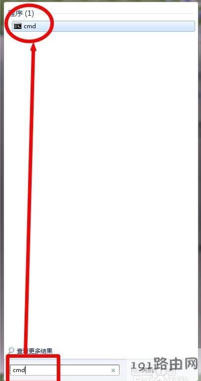 1,在開始菜單內(nèi)搜索“cmd”,然后在程序下面可以看到這樣的圖標(biāo),將它打開。