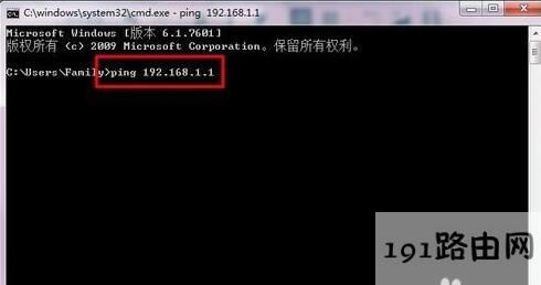 2,然后再命令提示符的輸入框內(nèi),輸入:ping 192.168.1.1,單擊回車后,將會(huì)進(jìn)行檢測(cè),然后我們看一看此時(shí)是否可以訪問,如果仍不能,請(qǐng)嘗試第二種解決方法。