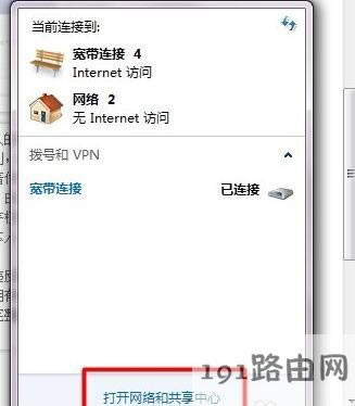 1,打開右下角的網(wǎng)絡(luò)連接圖標(biāo),然后打開“網(wǎng)絡(luò)和共享中心”