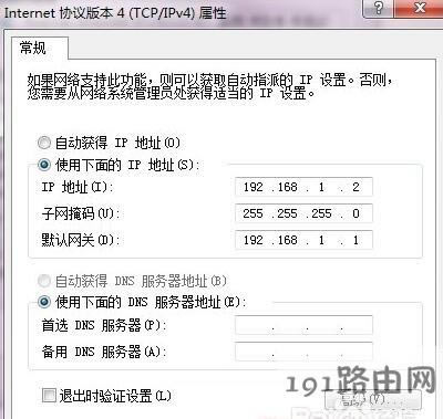 5,我們先選擇“使用下面的IP地址”,然后將以下內(nèi)容填寫為: