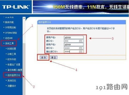 溫馨提示: (1)、部分無線路由器,在修改了wifi密碼后,會提示重啟路由器;這時候按照提示重啟一下無線路由器即可。 (2)、修改wifi密碼后,沒有提示重啟的路由器;當前的wifi連接也會端口,需要使用修改后的wifi密碼來重新連接。 2、修改登陸密碼 點擊“系統(tǒng)工具”——>“修改登錄口令”選項,然后在右側界面中,在“原用戶名”、“原口令”后面填寫原來的登陸帳號、登錄密碼——>在“新用戶名”、“新口令”、“確認新口令”后設置新的用戶名、登錄密碼——>最后點擊“保存”。 ![]() 溫馨提示: (1)、點擊“保存”按鈕后,會退出當前的登錄狀態(tài),需要使用新的登錄密碼,重新登錄到設置界面。 (2)、目前,TP-Link、迅捷、水星新推出的路由器,已經沒有登陸帳號了;第一次打開管理頁面的時候,系統(tǒng)會自動提示用戶設置一個管理員密碼(也就是登錄密碼)。所以,在修改的時候,沒有修改登錄用戶名的選項。 注意問題: 不同品牌的無線路由器,設置界面有所差異;但是用手機登陸到192.168.1.1設置頁面,修改密碼的操作步驟都是一樣的:手機先搜索連接到路由器wifi信號——>用手機登陸到192.168.1.1頁面——>修改無線wifi密碼、登陸密碼。 路由器不僅讓你更穩(wěn)定快速地連接無線網絡,更可以讓家中的智能設備連接在一起。 |