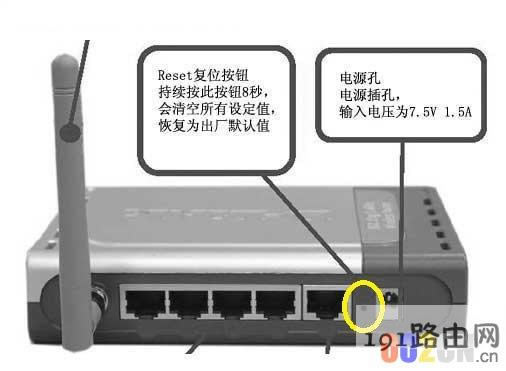 每個(gè)路由器后面都有一個(gè)路由器復(fù)位按鈕,其作用就是可以通過這個(gè)按鈕實(shí)現(xiàn)路由器恢復(fù)出廠設(shè)置,比如很多用戶忘記了路由器設(shè)置管理用戶名與密碼,無法進(jìn)入路由器設(shè)置,那么只能通過路由器復(fù)位按鈕,將路由器恢復(fù)到出廠設(shè)置,然后再重新設(shè)置路由器上網(wǎng)了。