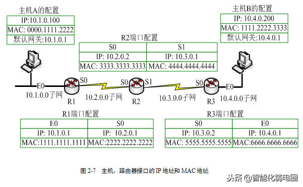 本章導讀 本章重點介紹了路由器的組成、配置模式、啟動過程、基本配置、工作原理等。 本章的學習目標: & 掌握路由器的內部結構 & 熟練掌握路由器的啟動過程 & 了解路由器的工作原理 & 掌握路由器的基本配置 2.1 路由器基礎知識 2.1.1 路由器面板 交換機的接口大多在前面板上,路由器的大部分接口都在后面板上,路由器的前面板上只有一些指示燈銳捷路由器將CONSOLE配置口(控制臺端口)和AUX配置口(輔助端口)放置在前面板上,所以路由器經常反過來安裝在實驗室,以便于接線。有些路由器有兩個同步串口,有些路由器有多個網絡接口卡插槽和模塊插槽,如圖2-1所示。有些路由器有兩個同步串口,有些路由器有多個網絡接口卡插槽和模塊插槽,如圖2-1所示。 ![]() 2.1.2 路由器的組成 由硬件和軟件組成的路由器。硬件由中央處理單元組成(Central Processor Unit,CPU),只讀存儲器(Read Only Memory,ROM)、內存(Random Access Memory,RAM)、閃存(FLASH Memory)、非易失性內存(Nonvolatile RAM,NVRAM)、接口,控制臺端口(CONsole Port)、輔助端口(AUXiliary Port)、線纜(CABle)由路由器組成的物理硬件和電路;IOS由操作系統和操作配置文件組成。 1.處理器 路由器本質上是一種包含中央處理單元的特殊計算機主機(CPU),不同系列和型號的路由器CPU也不一樣。 1.處理器 路由器本質上是一種包含中央處理單元的特殊計算機主機(CPU),不同系列和型號的路由器CPU也不一樣。CPU主要任務是管理和維護路由器的配置,選擇最佳路由,轉發數據包。 2.存儲器 路由器主要使用四種類型的存儲器:ROM、RAM、Flash RAM、NVRAM。 (1)ROM(只讀內存) ROM保存加電自測診斷所需的指令、自舉程序和路由器IOS(Internetwork Operating System)操作系統的指導部分負責路由器的指導和診斷(系統的初始化功能)。它是使路由器進入正常工作狀態的路由器啟動軟件。ROM通常存儲在一個或多個芯片上,或插入路由器的主板上。ROM軟件升級需要替換CPU可插拔芯片。 ROM主要包括: ① 系統加電自檢代碼(POST):檢測路由器各硬件部件是否完好。 ② 系統引導區域代碼(Boot Strap):用于啟動路由器并載入IOS操作系統。 (2)閃存(Flash) Flash RAM(閃存)是保存可讀可寫的存儲器IOS操作系統(IOS當IOS升級時,無需更換處理器芯片,只需重寫即可Flash RAM內容可以,其作用相當于硬盤。數據仍然可以在系統重新啟動或關閉后保存,以保持路由器的正常運行。事實上,如果Flash容量足夠大,甚至可以存儲多個操作系統IOS升級非常有用。不知道新版本IOS升級后是否穩定可以保留舊版本IOS,出現問題時,可迅速返回舊版本的操作系統,避免長期網絡故障。閃存或安裝在主機上SIMM要么在槽上做成一塊PCMCIA卡。 (3)非易失性RAM(NVRAM) NVRAM(非易失性RAM)保存可讀可寫存儲器IOS路由器啟動時讀取的啟動配置數據(配置文件)Startup-Config)。當路由器啟動時,首先找到并執行配置。路由器啟動后,該配置成為運行配置NVRAM將其轉換為啟動配置,并在下次路由器啟動時轉換為修改后的新配置。NVRAM路由器上通常只配置32個容量KB~128KB大小的NVRAM。同時,NVRAM速度快,成本高。 (4)隨機存儲器(RAM) RAM(隨機存取內存),只有可讀可寫的存儲器RAM當路由器啟動或斷電時,丟失計算機中的內容和RAM一樣。RAM的作用有: ① 存放路由表 ② 作為高速緩存(地址分析協議)ARP高速緩存、快速交換、臨時和運行的配置文件) ③ 數據存儲器(作為數據包緩沖,數據包保持隊列) ④ 命令(程序代碼) RAM存取速度優于上述三種存儲器,使路由器CPU能夠快速訪問這些信息。 3.路由器接口 路由器可以通過接口進行網絡互聯,可以物理連接到各種網絡。路由器的接口技術非常復雜,接口類型也很多。 3.路由器接口 路由器可以通過接口進行網絡互聯。它可以物理連接到各種網絡。路由器的接口技術非常復雜,接口類型也很多。路由器接口主要分為局域網接口、廣域網接口和配置接口。每個接口都有自己的名字和號碼,并在路由器上標記。根據路由器產品的不同,接口的數量和類型也不同。以太網是實驗室中常見的接口RJ45接口(標注f1/1s1/1)。 (1)局域網接口 RJ45接口:雙絞線以太網接口,標注“Fastethernet 1/1”等,有10M、100M、1000M目前最多100M。 SC接口:光纖接口,連接快速以太網或千兆以太網交換機,只有高級路由器。 (2)廣域網接口: 高速同步串口:可連接DDN、幀中繼、X.25、E1等。 同步/異步串口:Modem或Modem通過公共電話網絡將遠程計算機連接到網絡上。 ISDN BRI接口:用于ISDN通過路由器實現線路Internet128Kbps通信速率。 xDSL接口:用于xDSL連接線路。 (3)配置接口: AUX接口:該接口為異步接口,主要用于遠程配置、撥號備份、Modem連接。支持硬件流控制,很少使用。 Console接口:該接口為異步接口,主要連接終端或支持終端模擬程序計算機,并在本地配置路由器。最常用的配置接口是不支持硬件流控制。 4.路由器操作系統 IOS基于文本的命令行接口通常通過配置(Command Line Interface,CLI)進行的。 5.配置文件 配置文件有兩種類型: (1)啟動配置文件(Startup-config):也稱備份配置文件,保存在中NVRAM中。 (2)運行配置文件(running-config):也稱為活動配置文件,駐留在內存中。 2.1.3 可選路由器接口類型及應用 ![]() 1.E1接口及應用 E路由器一端接口的表現主要是DB9接口,在另一端DCE一端有兩種接口表現形式:光纖轉換器、接口轉換器、協議轉換器、光端機等。G.703非平衡的75 ohm,平衡的120 ohm2種接口