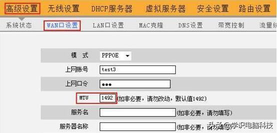 這里需要特別注意的是,當設置本地時 MTU 值必須記住將測得的值添加到 28,即 1464 28 = 1492。 ![]() 如何設置路由器?MTU值 關于路由器MTU進入路由器后,打開網絡參數wan口設置,然后點擊高級設置,打開后修改mtu如圖所示: ![]() 四、如何設置本地MTU值 (關于本機mtu設置修改,建議大家使用windows優化大師、魯大師等修改工具) 適用于下一種方法Vista、Win7、Win8.1、Win10 設置操作系統 MTU: 首先,檢查你當前的網絡 MTU 值,敲擊“WIN R”,輸入打開的操作窗口netsh interface ipv4 show subinterfaces再點確定。 ![]() 然后設置你正在使用的網絡 MTU 值,敲擊“WIN R在打開的操作窗口輸入netsh interface ipv4 set subinterface ";需要修改的連接名" mtu=值 store=persistent再點確定。其中,需要修改的連接名 和 值 用相應的值代替。其中,需要修改的連接名 和 值 用相應的值代替。例如,我需要在這里輸入: netsh interface ipv4 set subinterface "WLAN" mtu=1492 store=persistent 在這里,我已經用粗體字標出了要修改的地方。 另外,請注意修改 MTU 值與檢查不同,需要作為管理員操作命令提示符。 ![]()