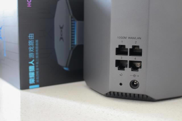 榮耀獵人游戲路由背面有4個千兆自適應網口,一個恢復出廠設置按鈕和電源插孔。支持盲插路由器的4千兆網口可根據網線上端設備自動確定WAN、LAN口。 ![]()