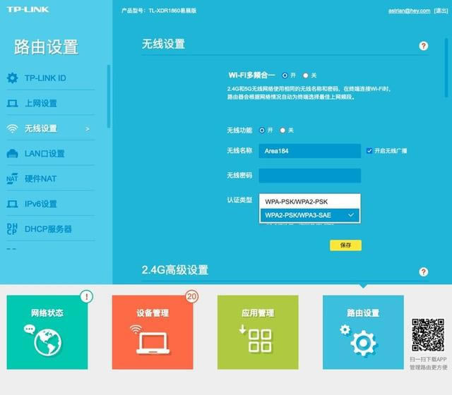 ▲ 通過 NFC 快速連接標簽 Wi-Fi. 以后會單獨講實現(xiàn)方法 今天,愛扇從最基本的密碼設(shè)置開始,一步一步地教你如何加強你的家 Wi-Fi 網(wǎng)絡(luò)安全。 基礎(chǔ)設(shè)置篇工欲善其事,必先利其器。想加強你的 Wi-Fi 從加密協(xié)議和密碼強度開始。 1. 使用 WPA2 或 WPA3 等強加密協(xié)議 目前主流有三種 Wi-Fi 網(wǎng)絡(luò)加密手段有線等效加密(WEP)、Wi-Fi 訪問保護(WPA),其中 WPA 還迭代到第二代和第三代。雖然舊設(shè)備仍在使用 WEP 但由于發(fā)現(xiàn)了嚴重的安全漏洞,默認被視為不安全的加密手段。 通常來說,目前新推出的 Wi-Fi AP(訪問熱點)設(shè)備的加密默認值 WPA2。假如你想檢查你的 Wi-Fi 網(wǎng)絡(luò)加密協(xié)議絡(luò)加密協(xié)議 Wi-Fi AP 或無線路由器(以下簡稱)「Wi-Fi 設(shè)備」)修改或檢查。以更新為主 TP-LINK 以路由器為例: 連接設(shè)備 Wi-Fi 設(shè)備網(wǎng)絡(luò),從瀏覽器打開路由器設(shè)置頁面,點擊底部「路由設(shè)置」,進入「無線設(shè)置」在右側(cè)「無線設(shè)置」部分找到「認證類型」,確保選擇「WPA2-PSK / WPA3-SAE」,點擊保存即可![]()