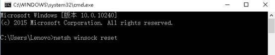 2.輸入打開的操作窗口cmd點擊確定后(不區分大小寫); ![]() 3、在DOS輸入命令窗口 netsh winsock reset ,敲擊Enter回車鍵。
