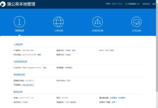 ![]() 這里顯示了連接路由器的設備,可以檢查流量消耗,限速斷網。這是路由器的本地管理,有完整的普通路由器網絡設置,操作方便;但是,如果您想使用他的先進功能,您需要打開云管理服務,在本地管理頁面的右上角找到它,然后單擊進入。