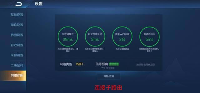 同時,我們還使用游戲《王者榮耀》來檢測網絡的延遲情況,可以看到,在連接母路由時網絡延時為4ms,連接子路由時網絡延遲5ms,基本處于同一水平! ![]()