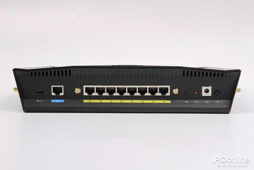 ▲從左到右的機身后端接口部分USB3.0接口,千兆WAN口,8個千兆LAN口,WPS按鈕,Reset按鈕、電源插孔、電源按鈕。 ![]()