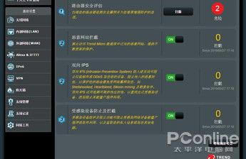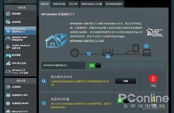 ▲內置的AiProtection基于智能網絡衛士的技術底層Trend Micro,在惡意程序、病毒等惡意侵入之前,可以通過實時網絡監控進行預警,為家庭網絡提供隱私保護。作為智能家居的網絡入口,路由器的高安全性仍然非常重要,AiProtection提高安全穩定性的智能網絡衛士。 開啟AiProtection智能網絡衛士后,可掃描路由器進行安全評估,攔截惡意網站和感染設備,防止機器攔截,攔截數量將在后面清楚顯示。 ![]()