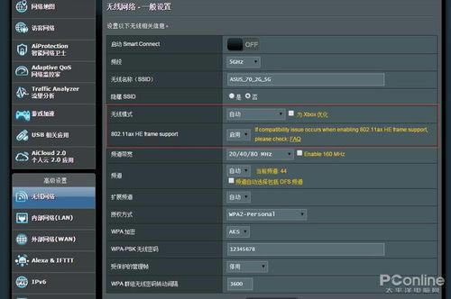 ▲在高級設置下的無線網絡欄中,無線網絡2.4G和5G WiFi中間,我們發現了Wi-Fi 6的開關。 ![]()