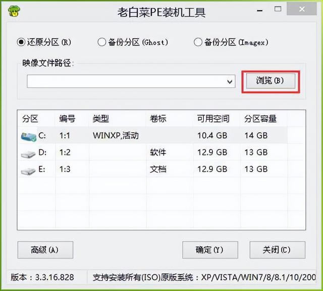 然后重啟計(jì)算機(jī),出現(xiàn)啟動(dòng)畫(huà)面時(shí),用啟動(dòng)快捷鍵引導(dǎo)u盤(pán)啟動(dòng)到老白菜主菜單界面,選擇02老白菜Win8PE標(biāo)準(zhǔn)版(新機(jī)器)”回車(chē)確認(rèn)。如下圖所示  登錄舊白菜裝機(jī)版pe系統(tǒng)桌面會(huì)自動(dòng)彈出老白菜PE點(diǎn)擊瀏覽裝機(jī)工具窗口(B)進(jìn)入下一步。如下圖所示  登錄舊白菜裝機(jī)版pe系統(tǒng)桌面會(huì)自動(dòng)彈出老白菜PE點(diǎn)擊瀏覽裝機(jī)工具窗口(B)進(jìn)入下一步。如下圖所示