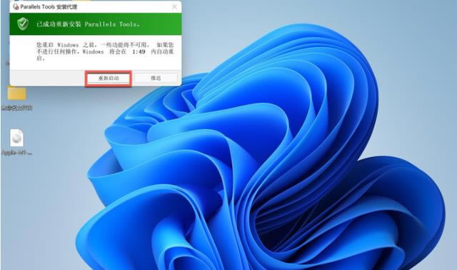 9.多次重啟后,進(jìn)入Win計(jì)算機(jī)將自動(dòng)更新11系統(tǒng)Parallels Tools,等幾分鐘。