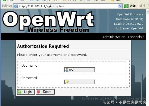 完成后重啟路由。默認密碼登錄路由系統root, ![]()