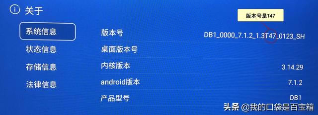 下面我們設置-高級-遠程調試,打開遠程調試。并設置-關于系統信息,查看盒子固件版本號,我的版本號是T47。假如你的固件版本號大于T47.請先降級。(這里不再描述降級操作。如有必要,請百度或私信我。T1降級”) ![]()