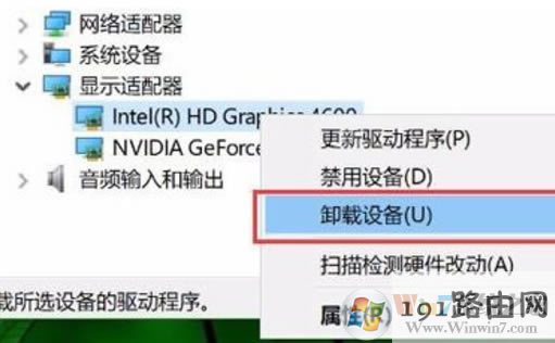 2、打開“顯示適配器”,找到集成顯卡,點(diǎn)擊鼠標(biāo)右鍵,選擇卸載;