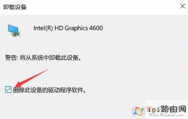 3、勾選“刪除此設(shè)備的驅(qū)動(dòng)程序軟件”,點(diǎn)擊卸載,然后重啟電腦。