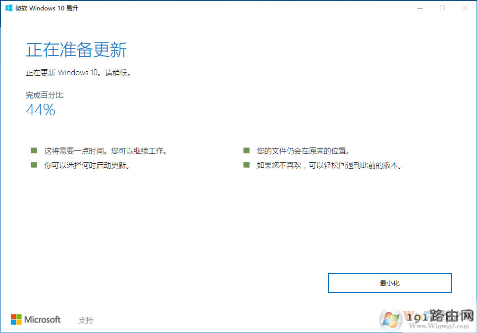 Windows系統是美國微軟公司以圖形用戶界面為基礎研發的操作系統,主要運用于計算機、智能手機等設備。有WindowsXP、windows7、windows8、windows10、windows11等系列,是全球應用最廣泛的操作系統之一。 導讀:(win10無法自動更新到1709怎么辦?舊版win10系統直接升級到win10 1709 RS3的方法)相關電腦教程分享。 win10 1709 RS3馬上就要發布了,想要預先升級或者是想要知道等待升級的用戶看過來看過來。廢話不多說,下面小編就詳細的為大家介紹2種升級到win10 1709 RS3的方法。![]() 1、請您先點擊此處下載升級Win10 1709 RS3的升級工具>> 2、找到下載完成后的升級工具,圖標如下所示: ![]() 3、雙擊運行升級工具,彈出升級向導,點擊“立即更新”,如下圖: ![]() 4、此時會對您電腦的基礎部件進行檢測是否兼容可用,檢測通過后,如下圖: ![]() 5、點擊“下一步”,進入更新過程,此時需等待百分比從0%到100%,受電腦硬件配置及網速影響,更新時間可能較長,可能需要1-2個小時,如圖: ![]() ![]() 6、更新完成后,點擊“立即重新啟動”,如圖: ![]() 7、電腦重新啟動進入桌面后,您可以同時按下鍵盤的Win+R組合鍵,調出運行框,輸入winver命令運行; ![]() 此時彈出的“關于Windows”對話框中顯示了版本號:1703,即表示升級成功。 ![]() 方法二:下載win10 1709鏡像,使用U盤安裝。 詳情請參考:Win10 1709 RS3秋季創意者更新正式版鏡像(ESD+ISO)下載溫馨提示:在安裝之前一定要將自己的系統激活碼備份出來,不然激活碼會丟失哦。 查看激活碼的方法:Win10如何查看當前系統的激活碼和office激活碼?總結:以上就是舊版win10系統直接升級到win10 1709 RS3的方法了,希望對大家有幫助。 |
